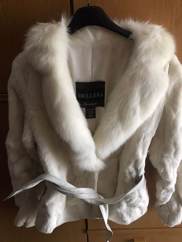 Pelliccia in lapin e volpe con cintura in pelle, la sua sacca, usata solo per un matrimonio. Pelliceria Dellera